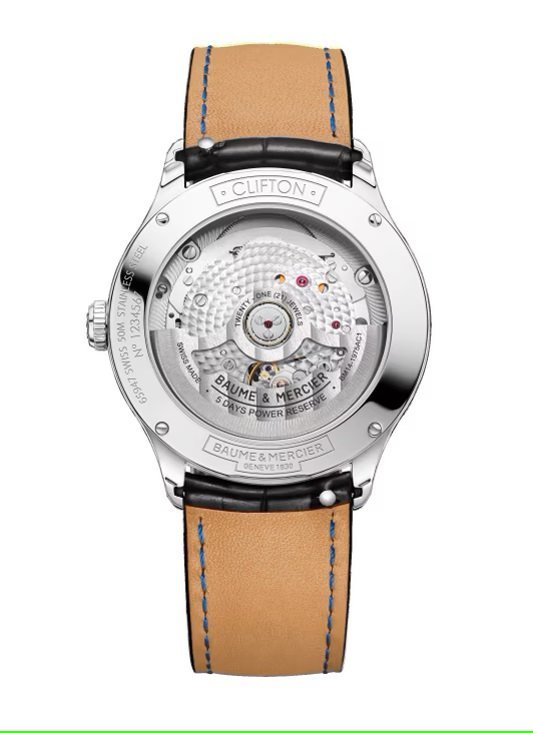 . As a moon-phase and date timepiece, the Clifton Baumatic 10758 embodies the quintessence of refinement with its stainless steel case, gradient grey lacquered dial and rhodium-plated attributes. It comes with an interchangeable black alligator strap adorned with tone-on-tone stitching.