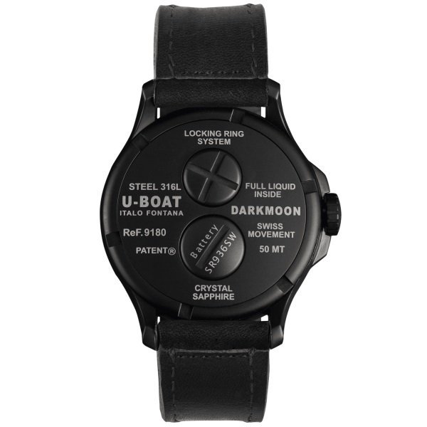 MOVEMENT. the Swiss precision of the Ronda 712.3 quartz movement, lubricated with oil bath.. . FUNCTIONS. hours, minutes, screw-down crown.. . CASE. stainless steel AISI 316L. with subsequent IPB treatment, completely filled with a special oil that emphasizes the dial, creating the illusion of the absence of glass, and an optical effect of an higher legibility. Visible air bubble on the dial to compensate the temperature variations. Distinguishing crown on left side. Diameter 44 mm.. . BACK. innovative locking system (Locking ring system) for a quick battery. . DIAL. blue metal with brushed soleil finishing, hands and indexes treated with beige luminova. Police logo printed on the dial.. . CRYSTAL. domed sapphire.. . WATER RESISTANCE. 50 mt, 5 ATM.. . STRAP. handmade and hand-finished black calf leather and blue stitching. Width: 22/20 mm. Ref. 9179/Z Stainless steel tongue buckle with subsequent IPB treatment, size 20mm. Ref. 1855 Additional strap in ultra-resistant vulcanised rubber, black color, personalised with the logo of the Maison in relief. Width 22/20 mm. Ref. 8351/Z IPB Steel tongue buckle, size 20mm. Ref. 5467/SCREW IPB