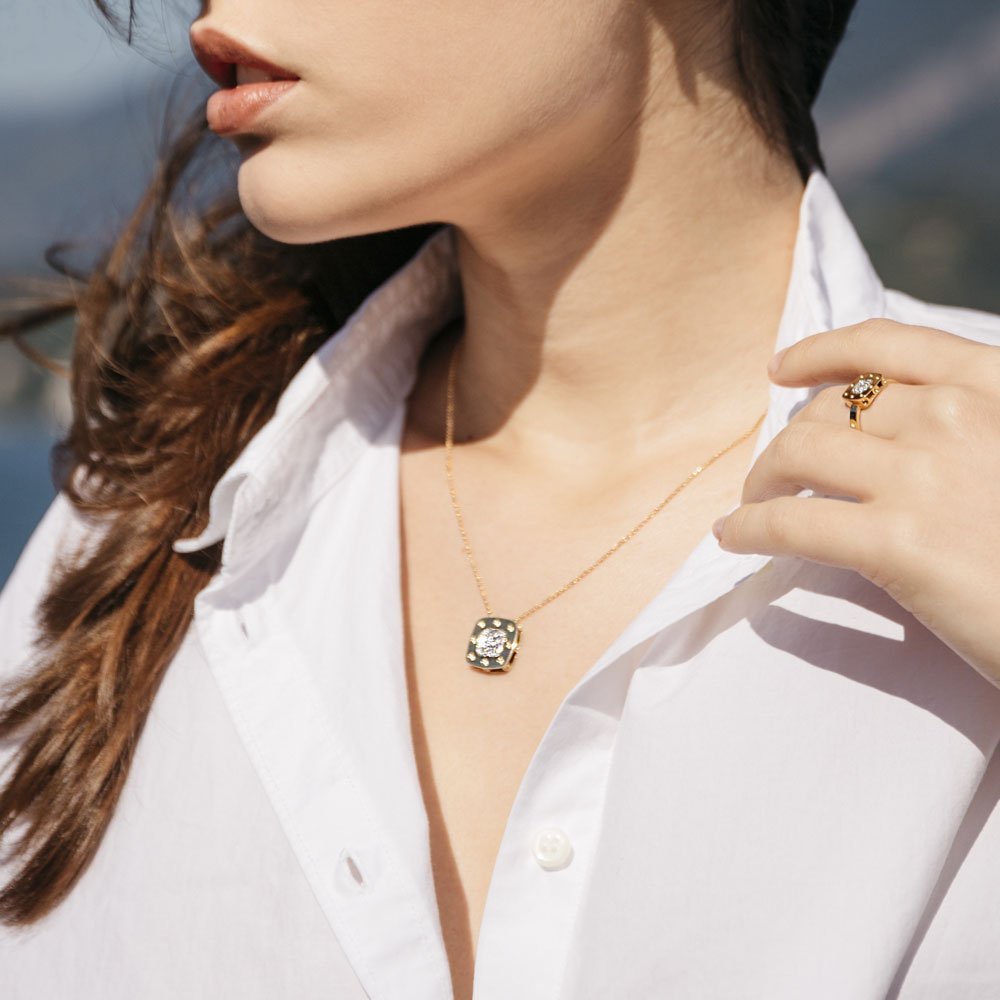 POIS MOI . . The ageless polka-dot trend has relinquished its traditional romanticism in favor of a decidedly edgier, unconventional style that is expressed in three different looks. . . The first version of Pois Moi that came out in 2013 still has the most radical look. The metal is treated like a quilted fabric and the rings and bracelets are shaped like the 1960s Brionvega television sets. Just one year later, in 2014 at the Andrea Palladio International Jewelry Awards, the Pois Moi collection won recognition as the best Italian collection in the world. . . On the wave of such an important success, Roberto Coin created the second edition of Pois Moi, the most luxurious. Every piece is covered in a pave of diamonds in a celebration of the opulent style of the divas of the 30s. . In these first two versions, Roberto Coin took a variety of inspirations from the past and re-interpreted them to create a decidedly modern look. . . The inspiration for the latest edition of the collection, created in 2018, came from far, far away. In its third edition, Pois Moi Luna, Roberto Coin has captured the fashion worlds attraction for the retro-futuristic trend. . The charm of vintage combines with an extraterrestrial atmosphere and the pattern of each piece evokes the uneven surface of the moon, recreated with veritable craters of diamonds and golden pathways. . . This latest edition of Pois Moi once again confirms the originality of its style, a style that gives elegance a decidedly extraordinary touch you could even call it celestial.
