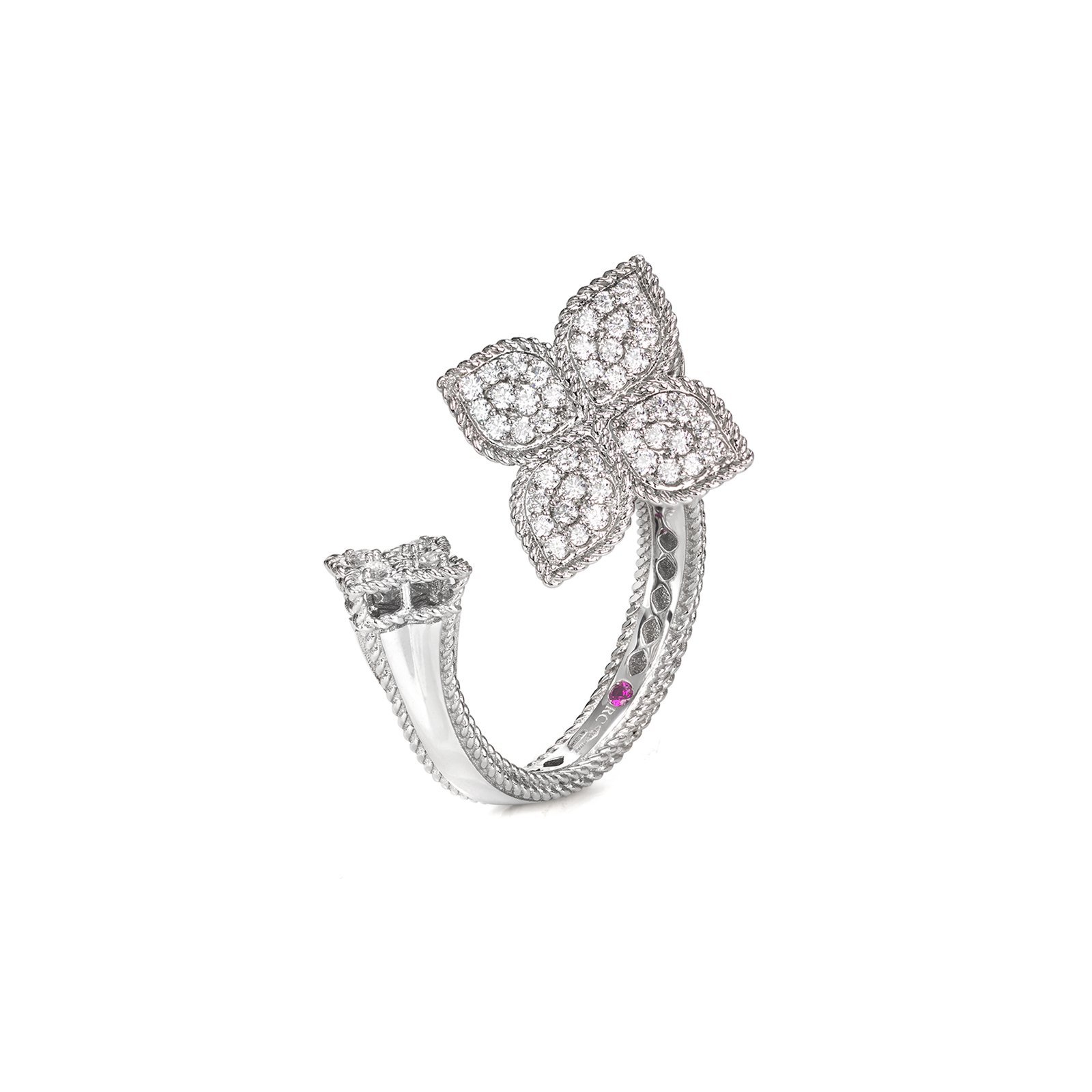 PRINCESS FLOWER . Like Venetian Princess, Princess Flower belongs to the creative bouquet of the Princess family of collections. . The flower made of small diamonds that decorates other Princess jewels has been re-elaborated in this collection to become the focal point of each piece. It was a natural evolution for the ornamental flower to grow until it bloomed. . The corolla displays all of its nuances made of gold and precious stones. The characteristic twisted wire detail is also used here once again in the internal structure of the pieces to create a three-dimensional frame that holds the flower. . Both the external part of the flower and the internal structure are created with 3D technology to guarantee the perfect proportions of the elements. Then, able craftsmen assemble the jewels, one by one, flower after flower.. This special production process makes every flower in the collection the perfect result of balance and care, just like flowers in nature.