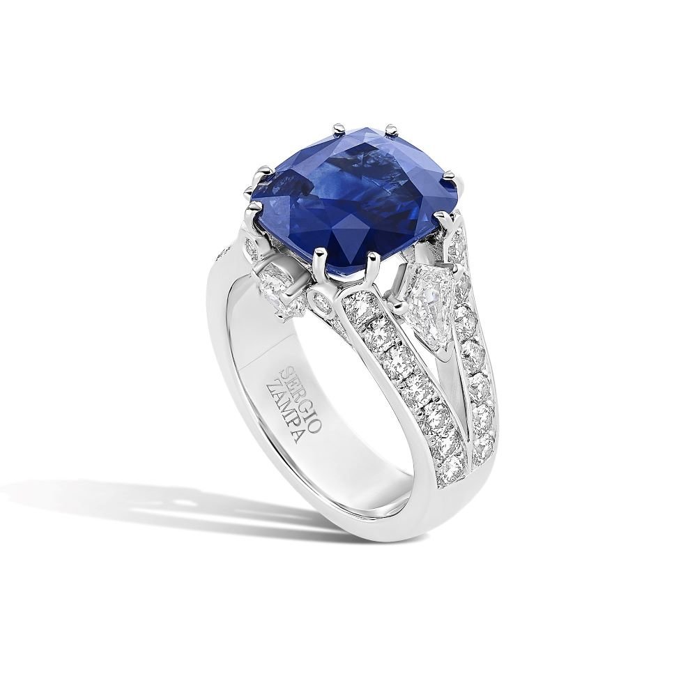 Gioielleria Zampa-Elegance-Blue Sapphire and Diamonds Ring